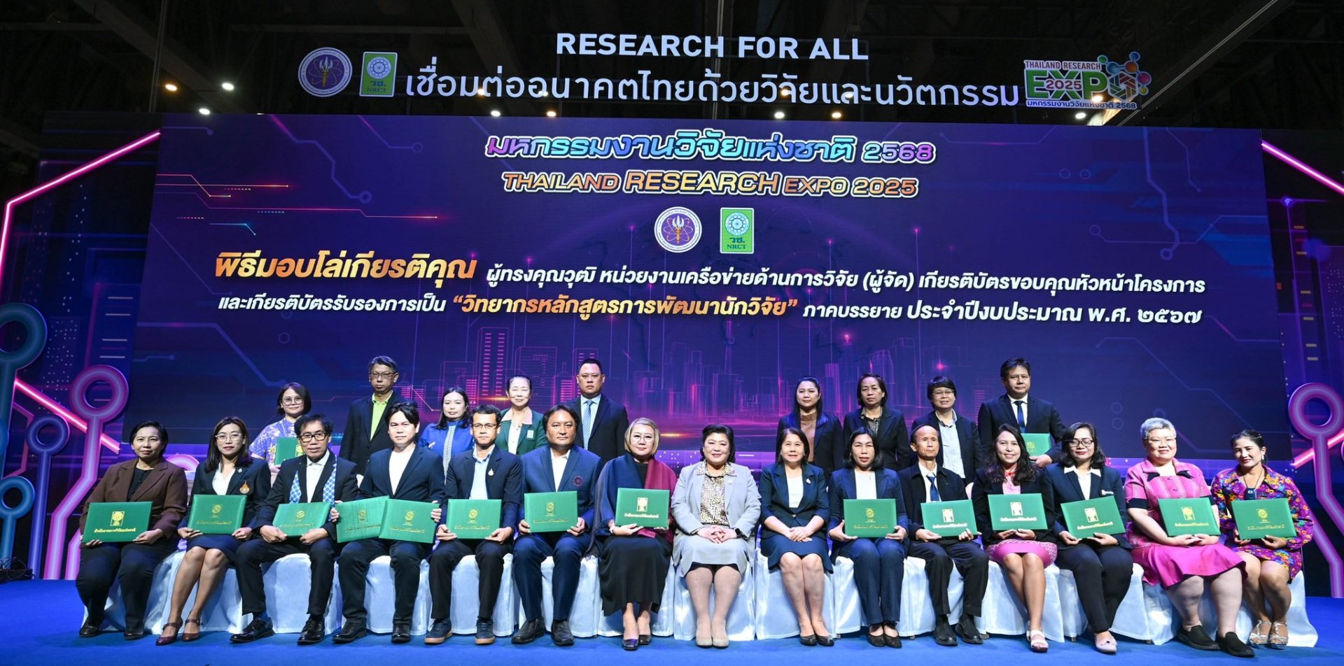 วิทยาลัยชุมชนระนองเข้ารับโล่ในงานมหกรรมงานวิจัยแห่งชาติ 2568 (Thailand Research Expo 2025) "Research for All