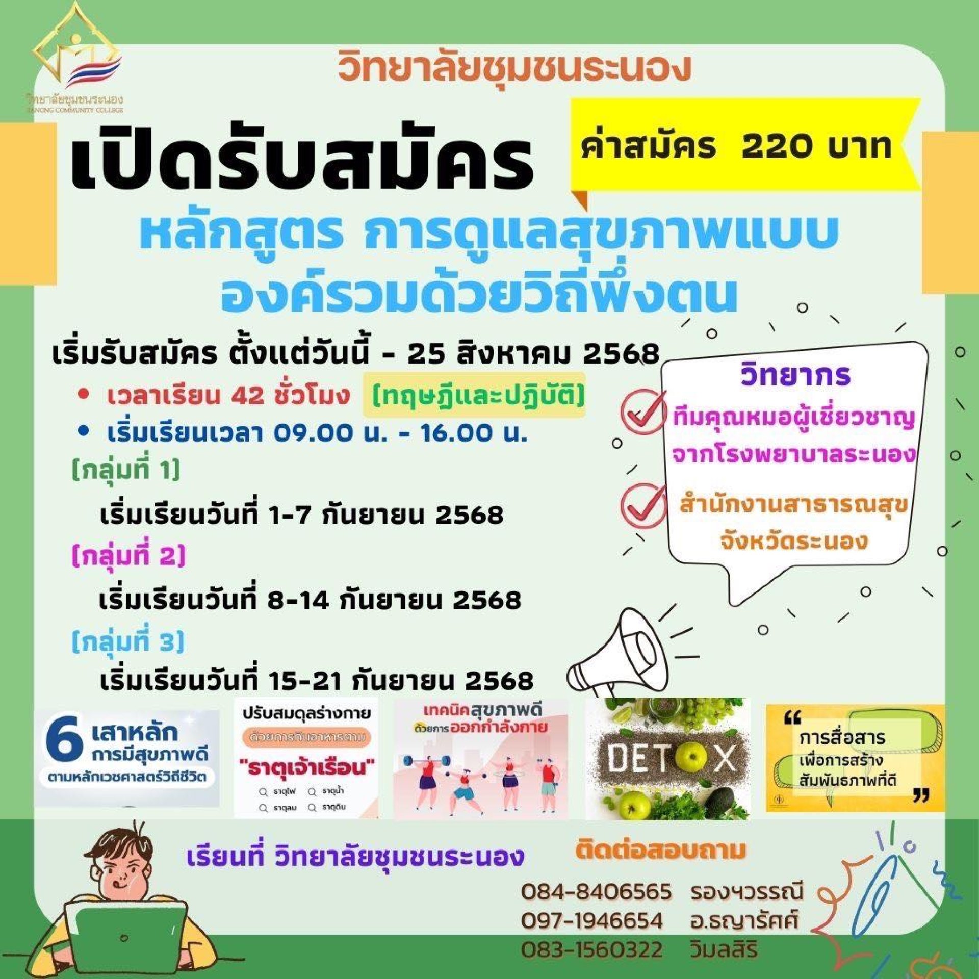 ขอเชิญผู้สนใจสมัครเข้าร่วม หลักสูตร “การดูแลสุขภาพแบบองค์รวมด้วยวิถีพึ่งตน”เพื่อเรียนรู้วิธีดูแลสุขภาพแบบองค์รวม ทั้งกาย ใจพร้อมปรับพฤติกรรมตามหลักวิถีพึ่งตน เพื่อสุขภาพที่ดีอย่างยั่งยืน