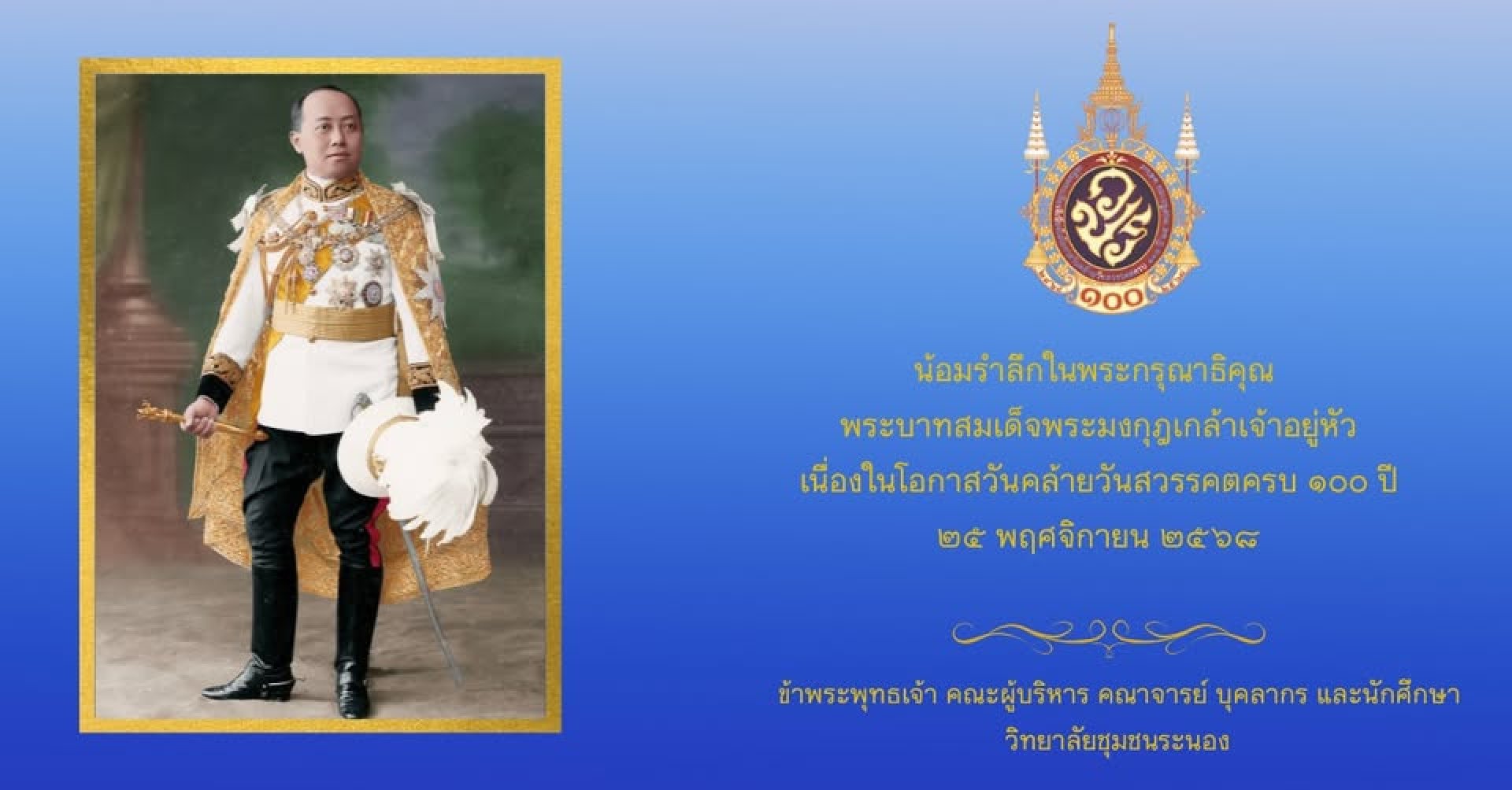 น้อมรำลึกในพระกรุณาธิคุณ พระบาทสมเด็จพระมงกุฎเกล้าเจ้าอยู่หัว เนื่องในโอกาสวันคล้ายวันสวรรคต ครบ 100 ปี