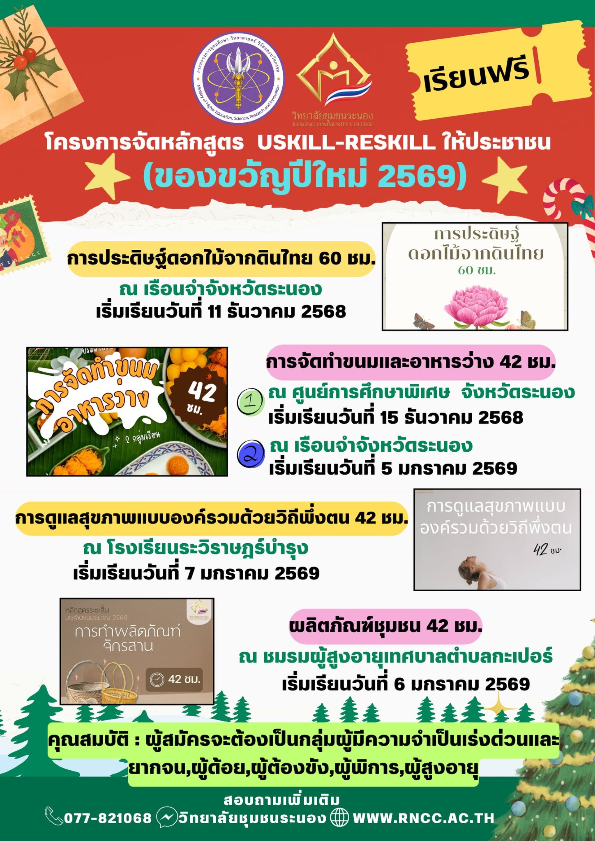 วิทยาลัยชุมชนระนองจัดโครงการจัดหลักสูตร USKILL–RESKILL ให้ประชาชน (ของขวัญปีใหม่ 2569)