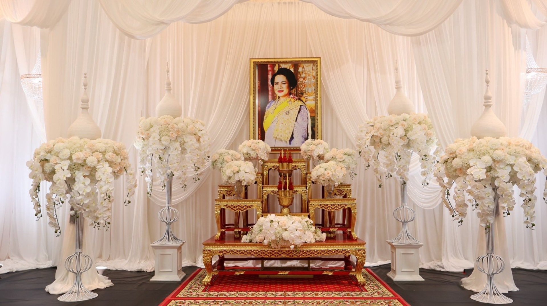 โดยนายราชัน มีน้อย ประธานในพิธีได้จุดเทียนสองธรรม จุดธูปเทียนเครื่องทองน้อย เบื้องหน้าพระฉายาลักษณ์ และกราบถวายสักการะพระฉายาลักษณ์ สมเด็จพระนางเจ้าสิริกิติ์ พระบรมราชินีนาถ พระบรมราชชนนีพันปีหลวง ก่อนจะจุดธูปเทียนเครื่องทองน้อย และฟังธรรม พระสงฆ์ให้ศีลและแสดงธรรมเทศนา 1 กัณฑ์ ประธานในพิธีจุดธูปเทียนหน้ากระบะมุก พระสงฆ์สวดธรรมคาถาจำนวน 4 รูป นายราช้น มีน้อย ผู้ว่าราชการจังหวัดระนองได้ถวายเครื่องไทยธรรมกันฑ์เทศน์พระสงฆ์แสดงพระธรรมเทศนา 1 รูป และถวายเครื่องไทยธรรมพระสงฆ์สวดทำคาถาทั้ง 4 รูป จากนั้น ประธานในพิธีทอดผ้าไตรบังสุกุล ก่อนที่ พระสงฆ์ทั้งห้ารูปสดับปกรณ์ กรวดน้ำ ประธานในพิธีและผู้เข้าร่วมพิธีได้กราบนมัสการลาพระรัตนตรัย และประธานสงฆ์