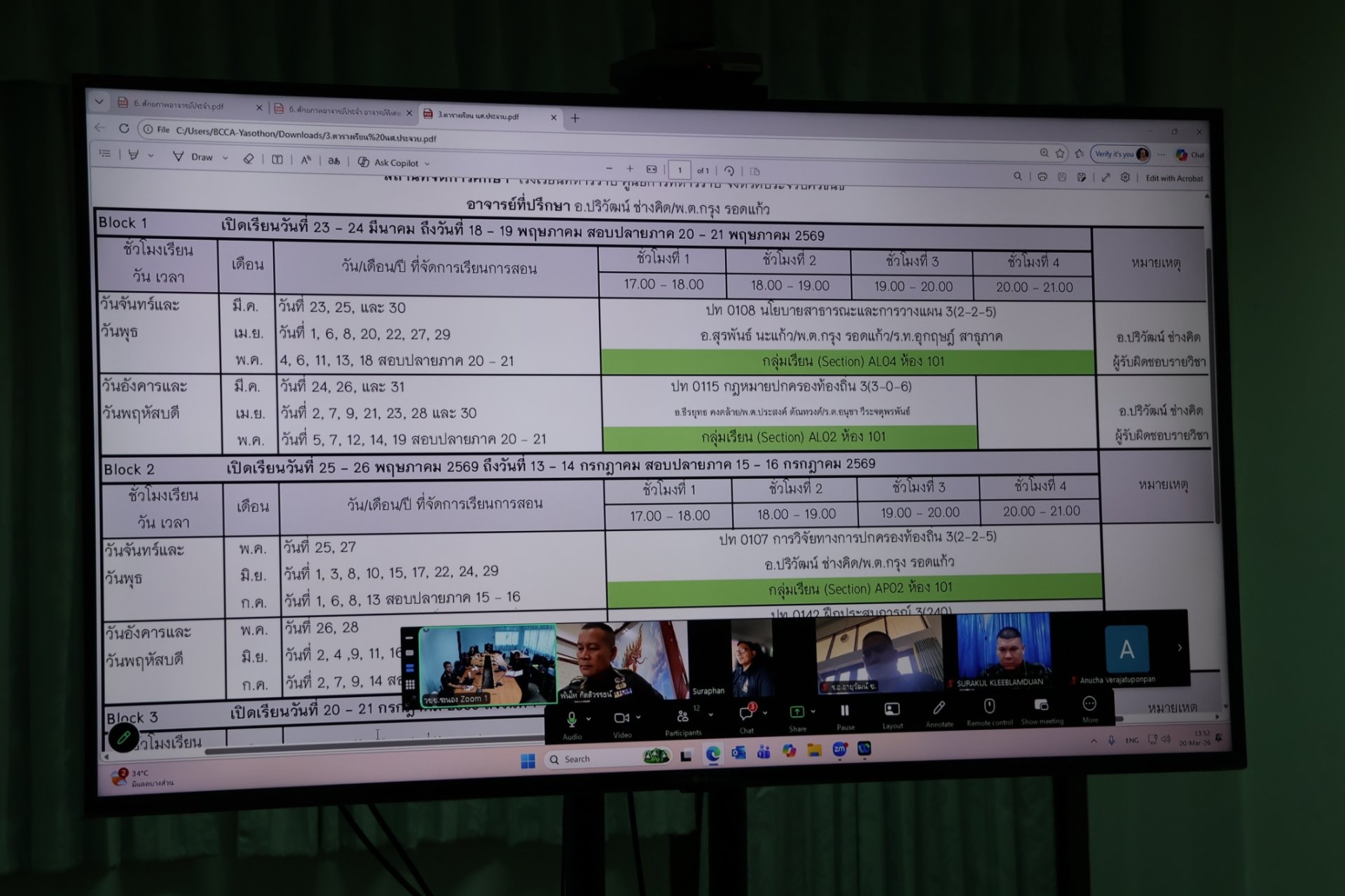 ในการประชุมครั้งนี้ ได้ร่วมกันพิจารณาและวางแผนการดำเนินงานในประเด็นสำคัญ ทั้งด้านการจัดตารางเรียน การกำหนดผู้สอน และการเตรียมความพร้อมในการลงพื้นที่ ในวันที่ 23 มีนาคม 2569 เพื่อให้การจัดการเรียนการสอนเป็นไปอย่างมีประสิทธิภาพและสอดคล้องตามมาตรฐาน